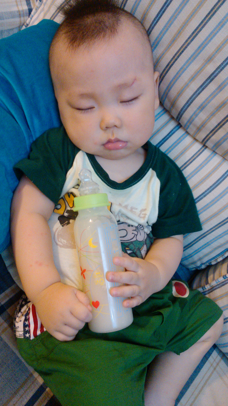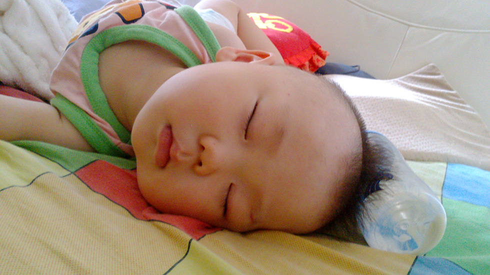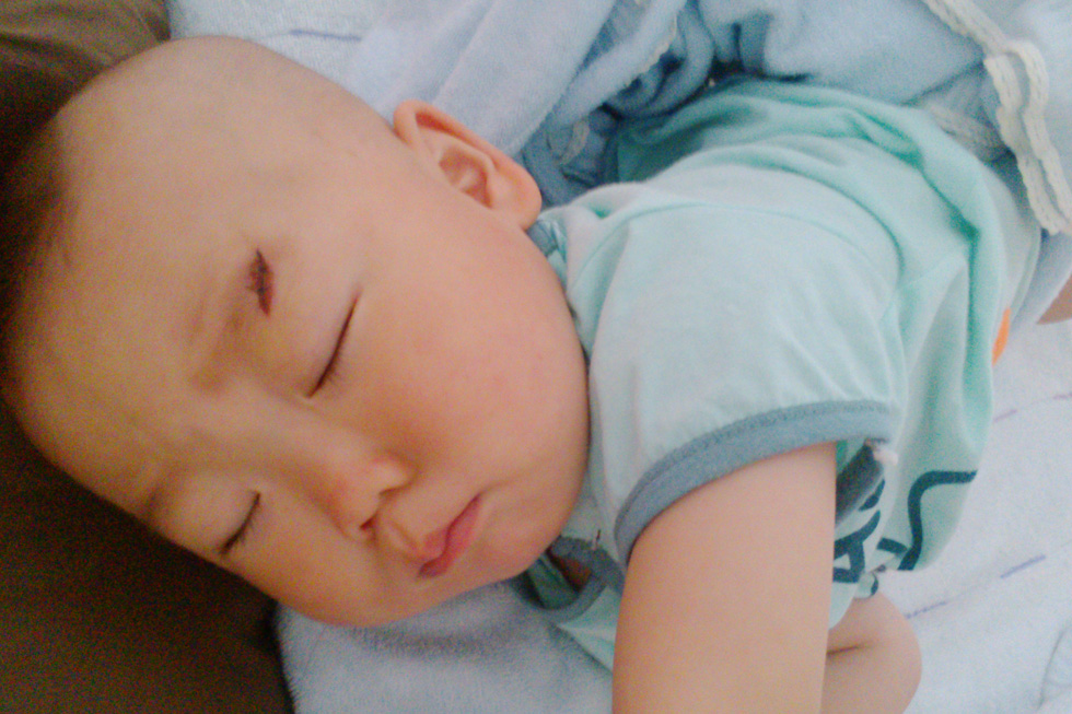 终于安静的睡觉了,折腾爸爸老半天了