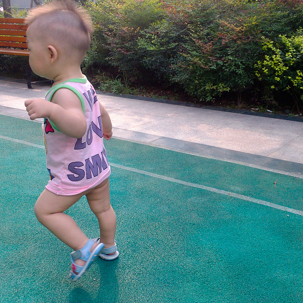 生日过完,还没来得急细细品味,转瞬之间它又长大了一个月,这个月发生了一件重要的事情,他会走路了。子豪先是慢慢的扶着东西站起来,后来可以自己站起来,稳定了一个星期后开始小心翼翼的迈步子,但还是喜欢用爬行的方式移动身体,终于在他一岁一个月前的一个星期里学会了独立行走。没有跌跌撞撞,没有搀扶与鼓励,爬惯了的他走起路来很顺畅,根本不用担心他会跌倒,即使跌倒了也会提前用手去撑住,了不起的成就。天啊,我还没有教你走路呢,这是一个很不错的亲自活动,但是他掌握这门技能已经不需要我了,是不是有点小失落呢?宝宝都是这样的,掌握了一项本领,就不再使用学会的本领,他现在已经不再爬了,去哪里都是走路的,而且特别喜欢走,经常带他到小区楼下的羽毛球场去练习走路,走的很happy的样子,漫无目的的走,八字步,小步挪,不在乎去哪里,只是不停的走,腿上有用不完的劲儿,就像鸟儿的翅膀硬了,就喜欢不停的扑煽翅膀一样。最近这段时间天气很热,给他理了一个莫西干头,小孩子怎么折腾都是对的,真羡慕他现在的年纪,不需要看世俗的眼神,可以做自己喜欢的事情,不对,应该是做爸爸喜欢让他做的事情,如果现在的我理一个莫西干头去上班,恐怕领导会找我去喝茶了。天热带来的是子豪白天只睡一觉,之前要睡两次的,这让老人带他更加辛苦。子豪,你的成长伴随着家人的付出,但也不要有压力哦